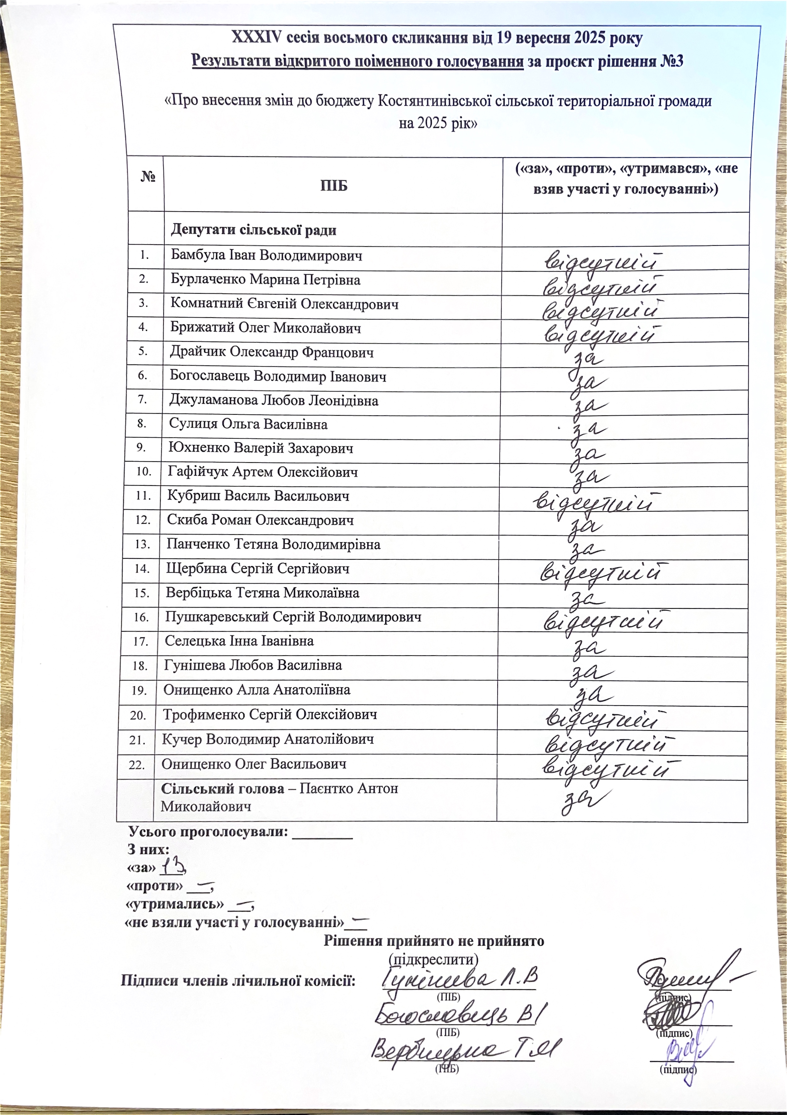 Рішення сільської ради від 19.09.2025 № 3 «Про внесення змін до бюджету Костянтинівської сільської територіальної громади на 2025 рік (1454700000) код бюджету»