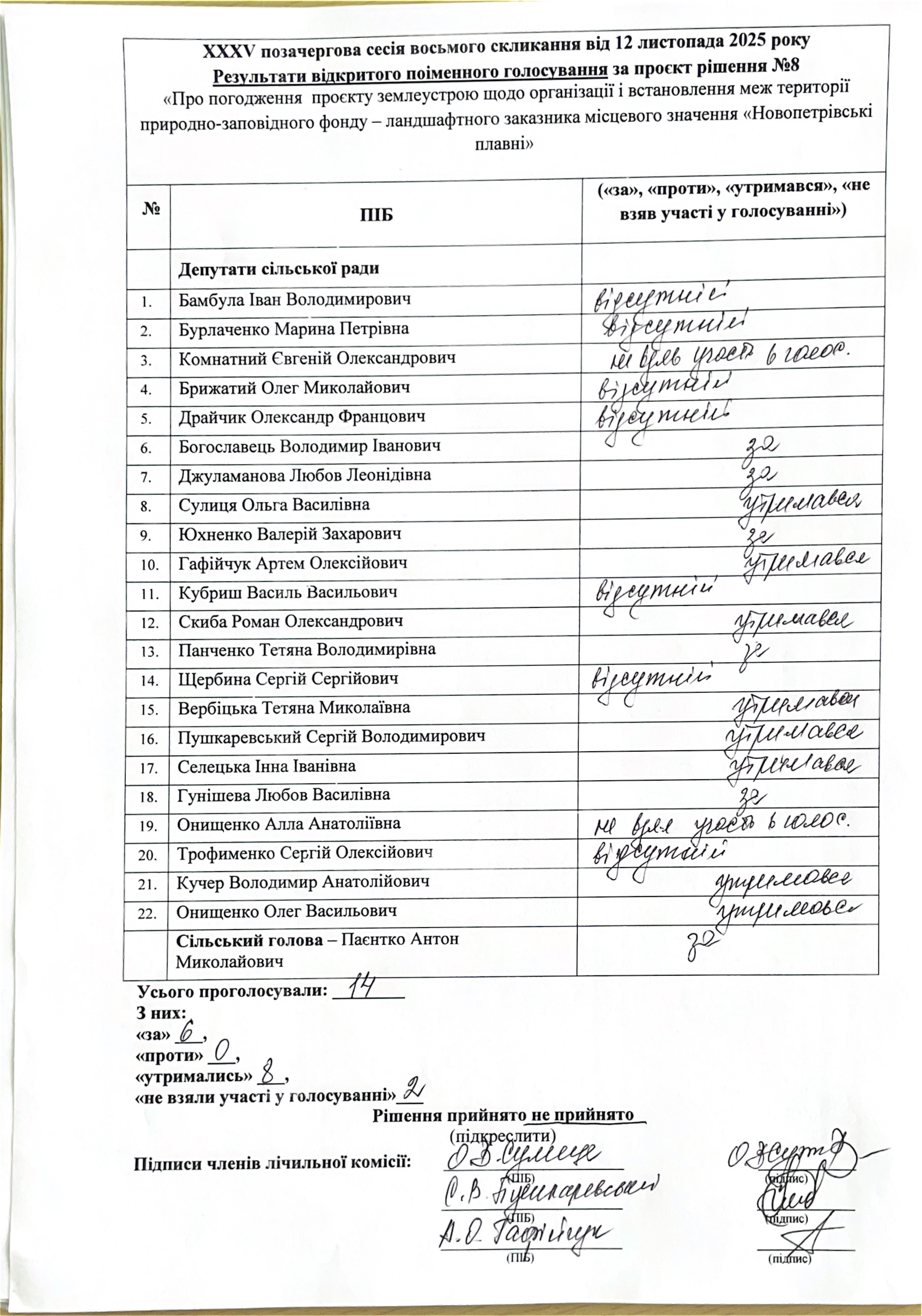 Проєкт рішення сільської ради від 12.11.2025 № 8 «Про погодження проєкту землеустрою щодо організації і встановлення меж території природно-заповідного фонду – ландшафтного заказника місцевого значення «Новопетрівські плавні»»